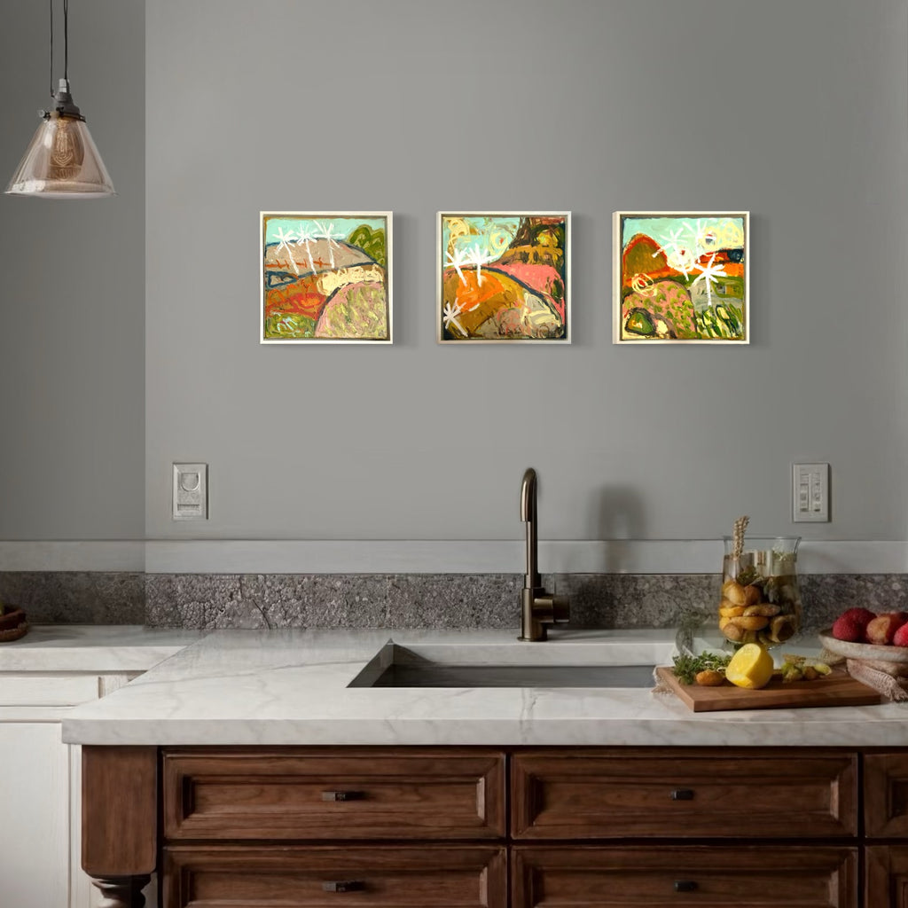 Margaret's sources of inspiration are diverse, but she has recently turned her attention to the microscopic world found in the waterways and nature that surround us, as well as the sounds and conversations of birds. She also draws inspiration from spending time with friends, the changing seasons, and the impact of COVID-19 on her life, which has led her to explore themes of home life, empty nesting, and relationships in her recent works.